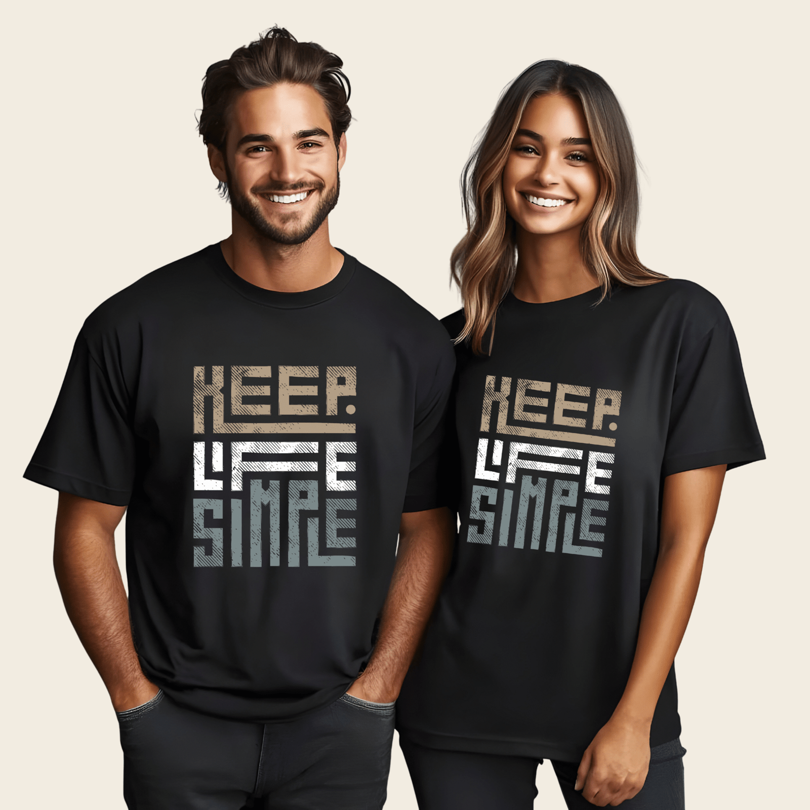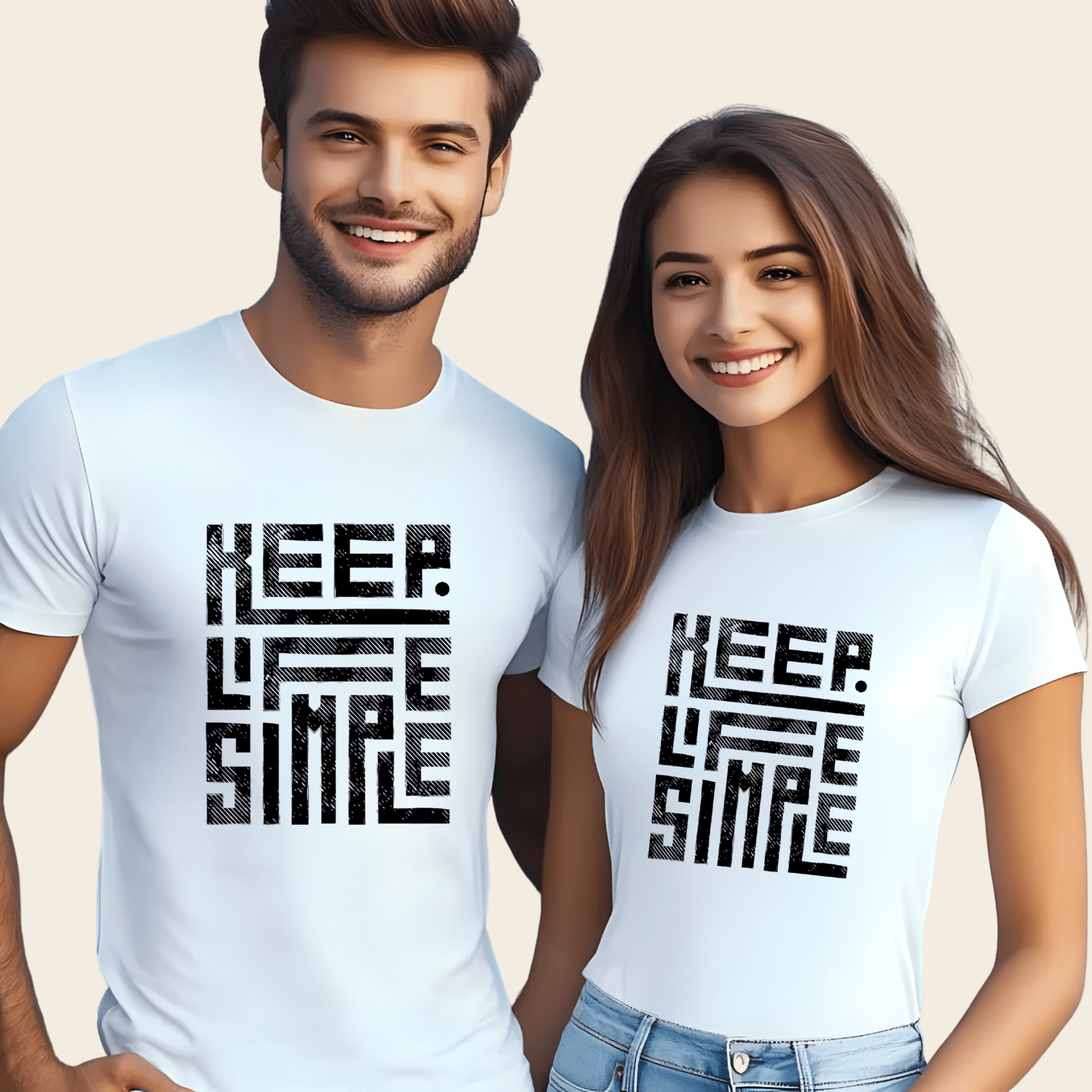 Celebre o minimalismo e a simplicidade com as nossas T-shirts “Keep Life Simple”. Perfeitas para casais que partilham a mesma filosofia de vida, estas t-shirts são uma forma elegante de expressar a vossa atitude em relação ao mundo. O design arrojado e moderno, com a frase “Keep Life Simple” num estilo gráfico único, confere um toque de sofisticação e originalidade ao vosso guarda-roupa.