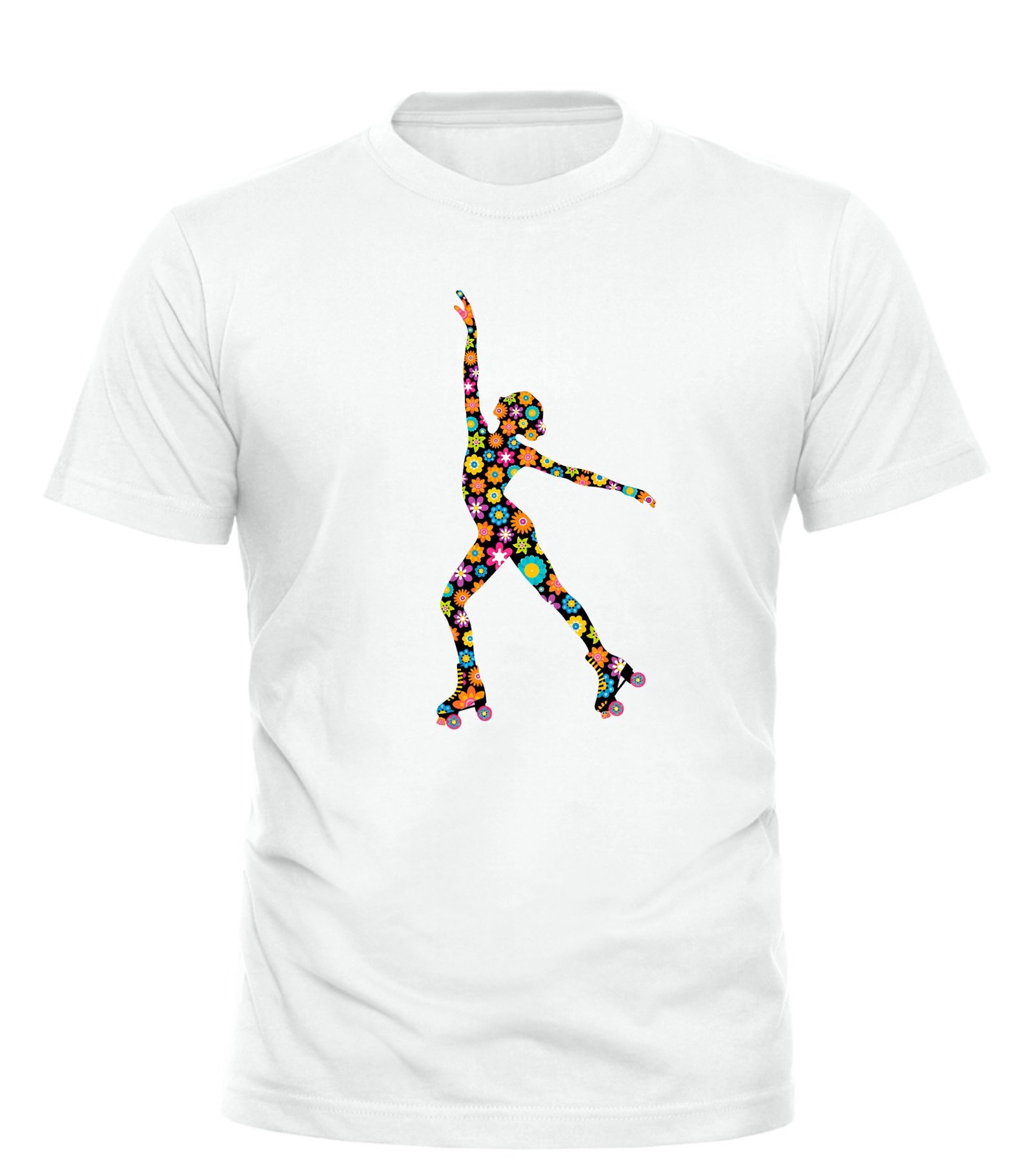 23resultLiberta a tua energia e celebra a alegria sobre rodas com a nossa T-shirt Patinadora Flower Power! Com uma silhueta vibrante de uma patinadora, preenchida com um padrão floral psicadélico, esta t-shirt é uma verdadeira homenagem ao espírito livre e colorido dos anos 70.
