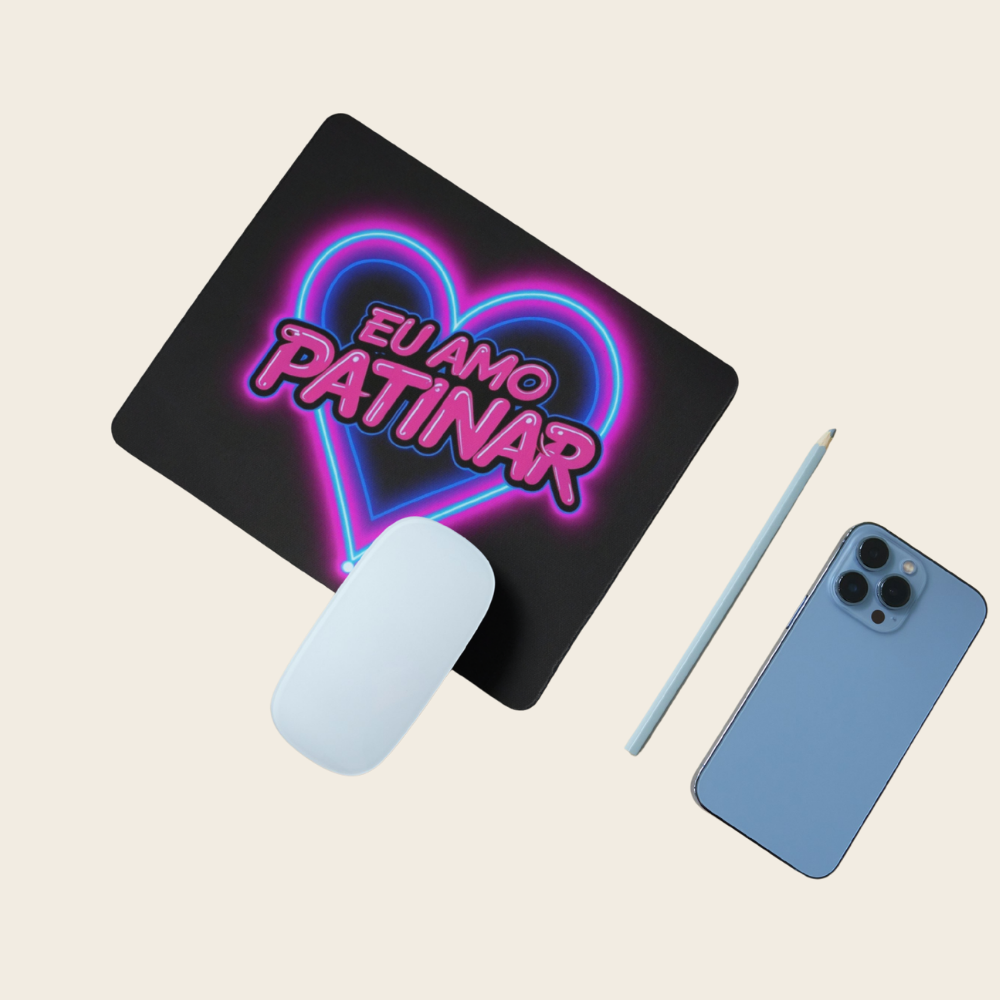 Expresse a sua paixão pela patinagem com um estilo moderno e vibrante! O nosso Tapete de Rato “Eu Amo Patinar” apresenta um design arrojado com um coração e a frase “Eu Amo Patinar” em estilo néon, perfeito para quem quer adicionar um toque de cor e energia à sua secretária.