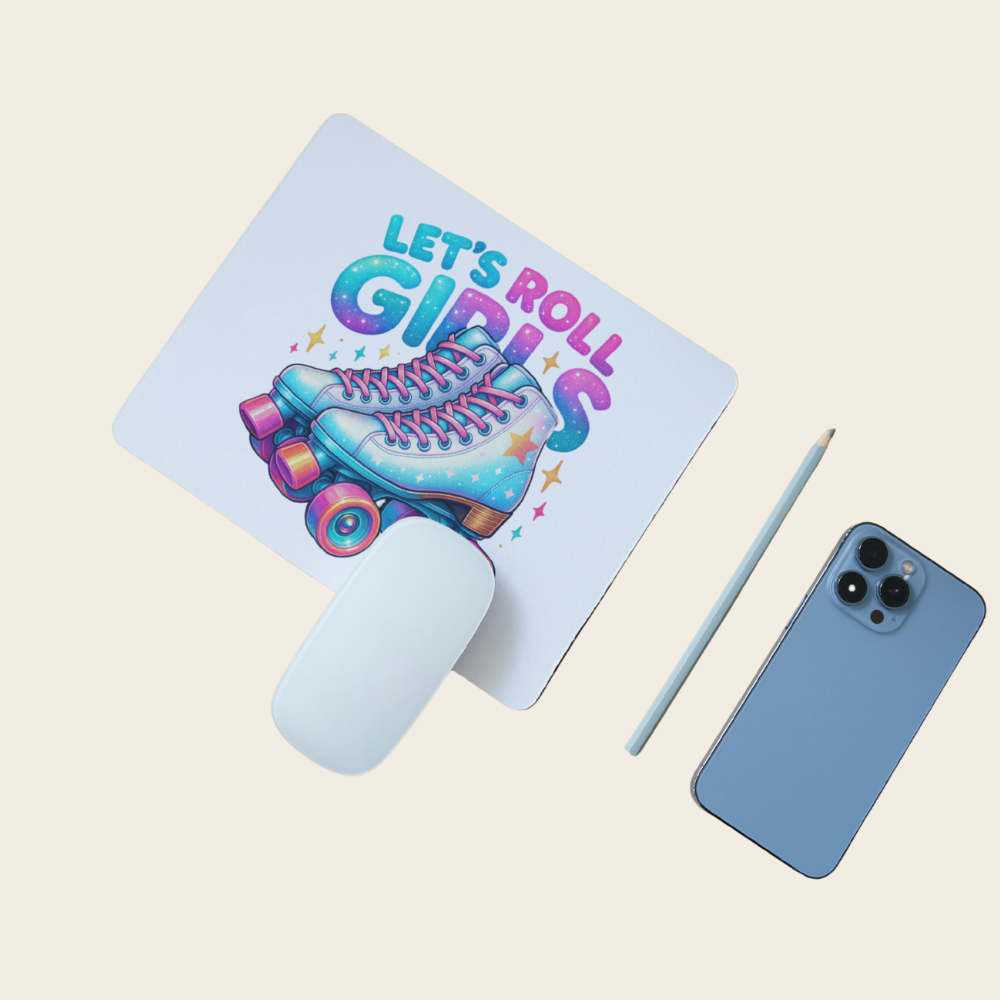 Traga a energia e a diversão da patinagem para a sua secretária com este tapete de rato inspirador! Com um design vibrante que inclui um par de patins retro coloridos e a frase “Let’s Roll Girls”, este acessório é um incentivo diário para se divertir e desfrutar do momento.
